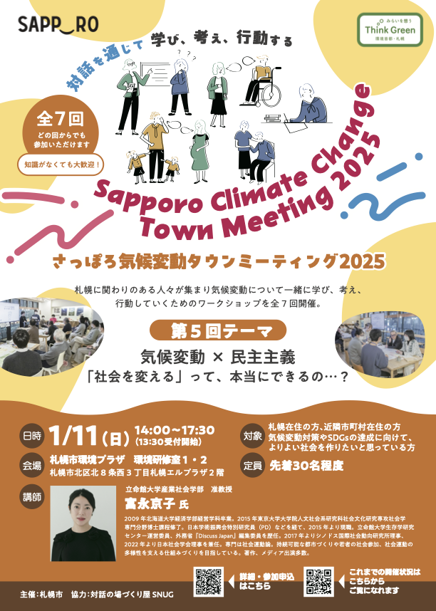 対象:札幌市又は札幌市周辺にお住まいで気候変動やSDGsに興味のある方